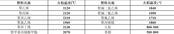 與燃燒熱一樣,火焰溫度是維持燃燒和延燃的重要因素。大多數聚合物的火焰溫度比火柴和香煙高得多,約達2000℃。