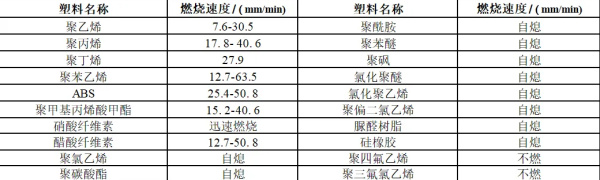 影響塑料燃燒的因素很多,包括作為內因的聚合物燃燒特性和作為外因的燃燒環境條件。在燃燒環境條件相同的情況下,則主要取決于聚合物的燃燒特性,包括化學組成和結構、比熱容、熱導率、分解溫度、燃燒熱、閃點和自燃點、火焰溫度、極限氧指數以及燃燒速度等。